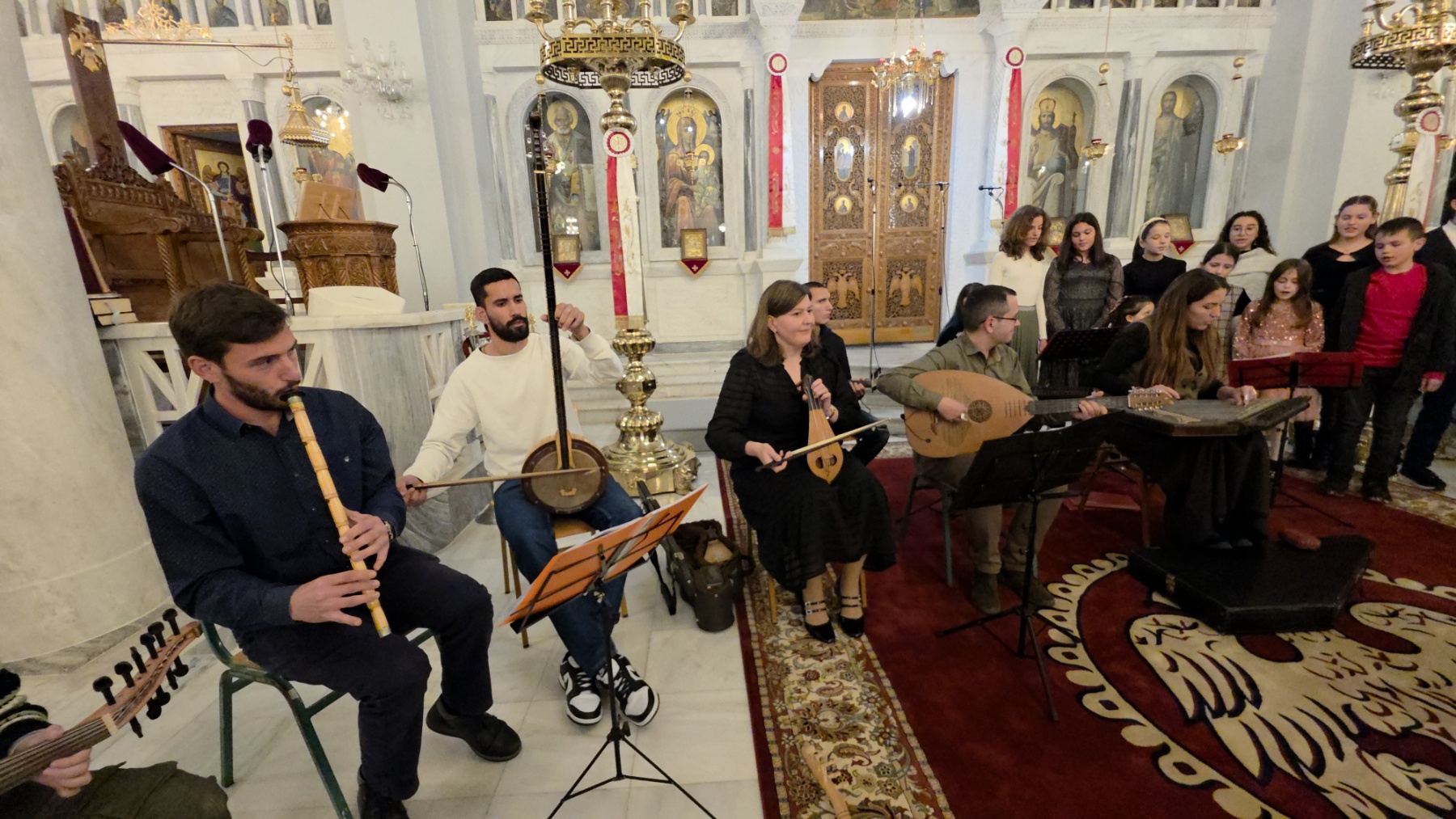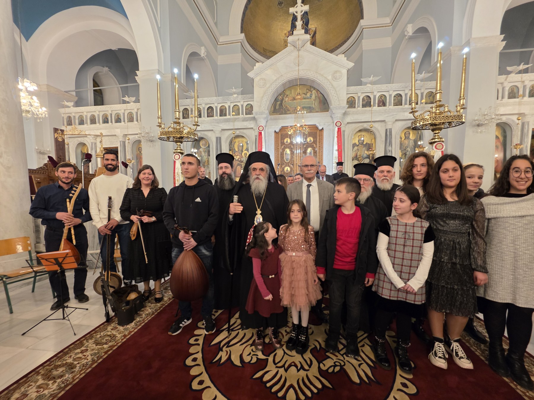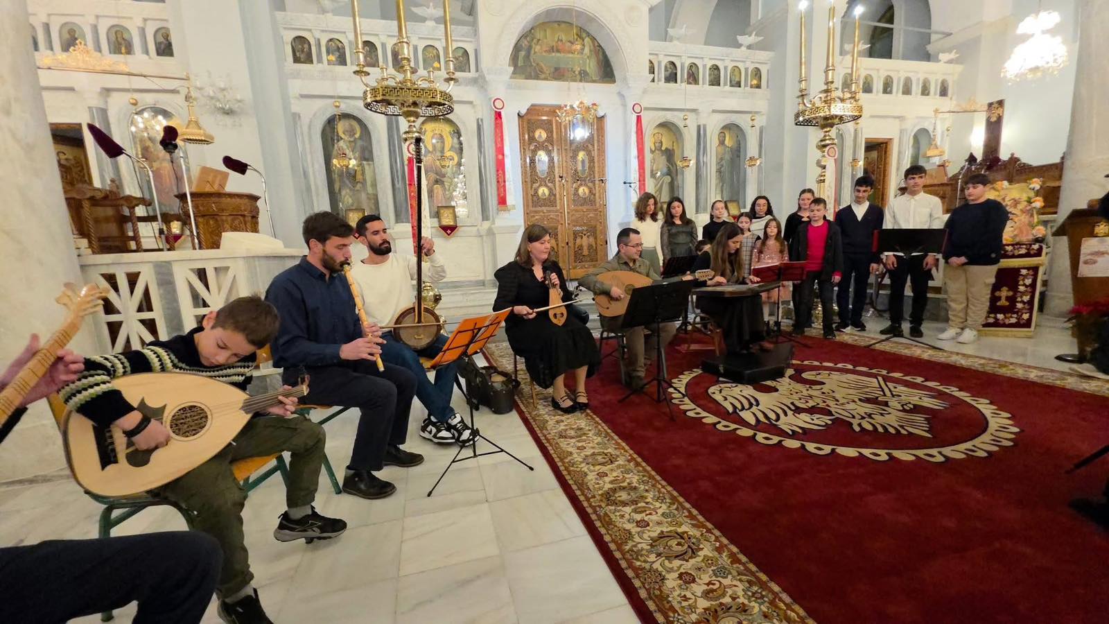 Παραθέτουμε φωτοστιγμές από την εκδήλωση της 21ης Δεκεμβρίου στην οποία συμμετείχαν ο Σύλλογος Ιεροψαλτών Νομού Ηλείας «Άγιος Ιωάννης ο Δαμασκηνός» και η παιδική χορωδία «Τριανταφυλλάκι» μαζί με την ορχήστρα παραδοσιακών οργάνων της Ιεράς Μητροπόλεώς μας.
