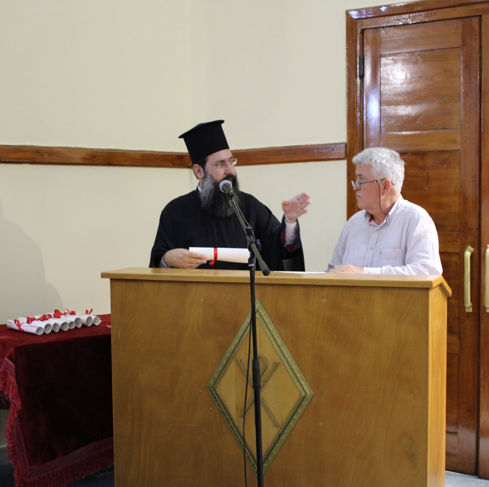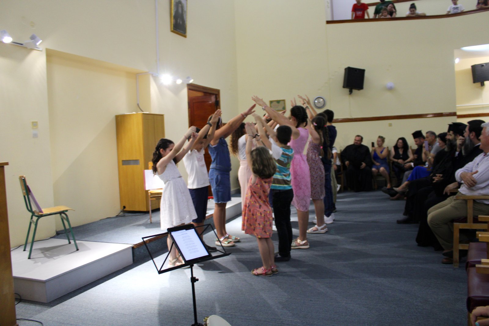 Στο τέλος της εκδήλωσης έλαβε τον λόγο ο Πανοσιολ. Πρωτοσύγκελλος π. Φιλάρετος, ο οποίος μετέφερε σε όλους τους κοπιάσαντες την ευλογία του απουσιάζοντος Σεβ. Μητροπολίτου μας κ. Αθανασίου, εξέφρασε την ικανοποίηση και τη χαρά του για την επιτυχία της εκδήλωσης και το αποτελεσματικό έργο της Σχολής, συνεχάρη δασκάλους και μαθητές, κι ευχήθηκε στα παιδιά συνεχή πρόοδο. Τέλος ευχαρίστησε το φιλόμουσο κοινό για την παρουσία του.