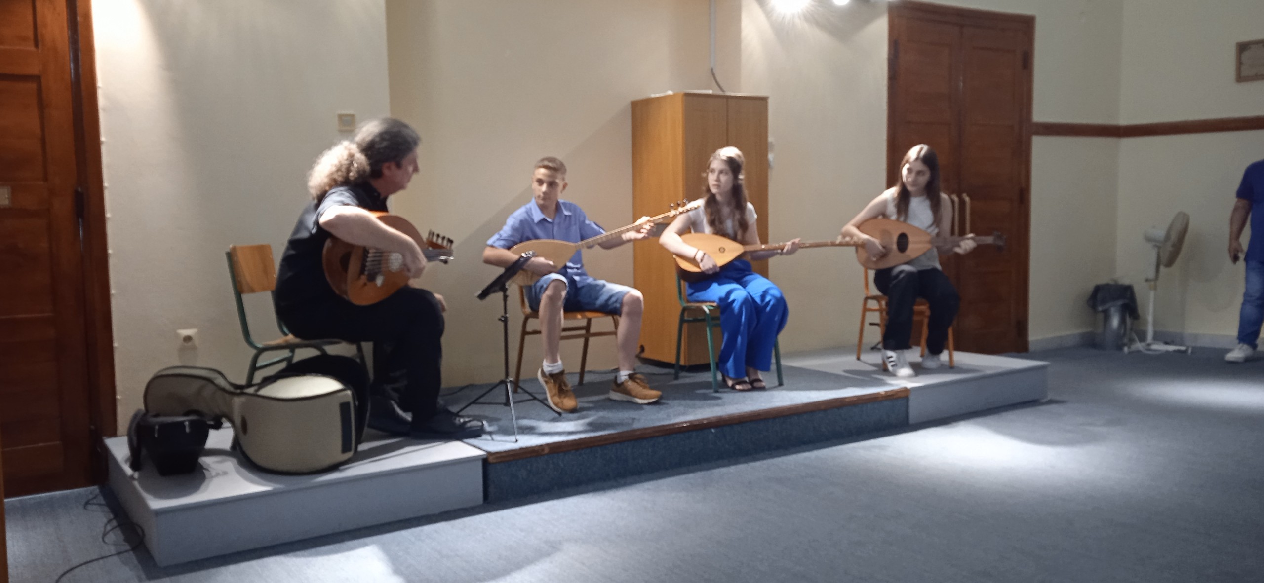 Στη συνέχεια ο υπεύθυνος δάσκαλος του τμήματος παραδοσιακών οργάνων, κ. Ευγένιος Βούλγαρης, αναφέρθηκε με γλαφυρότητα στη δουλειά που έγινε τη χρονιά που πέρασε και παρουσίασε αναλυτικά την πρόοδο των μικρών μουσικών συνόλων των μαθητών.