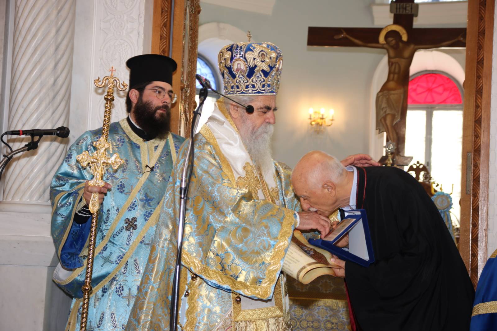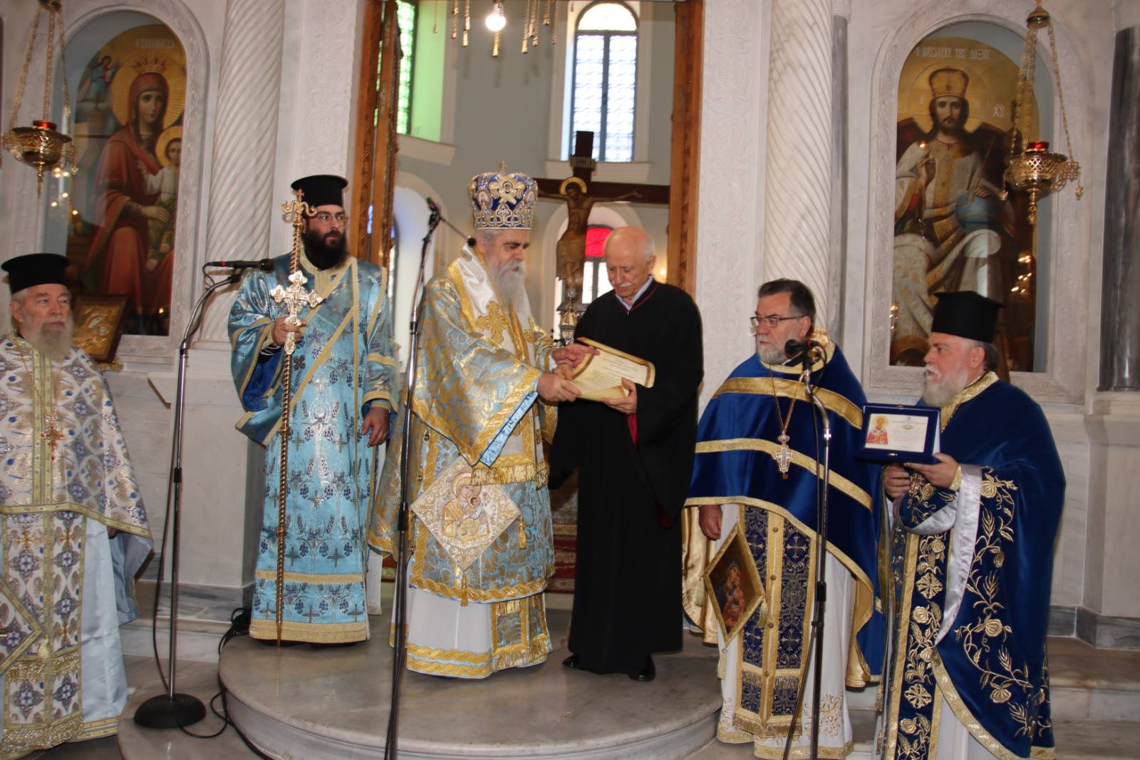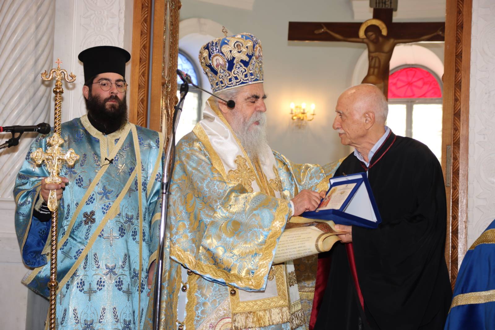 Ο Σεβασμιώτατος Μητροπολίτης μας κ. Αθανάσιος Β΄ τίμησε την 25η Μαρτίου 2024 -ανήμερα της ονομαστικής του εορτής- τον μέχρι τώρα Πρωτοψάλτη του Ιερού Μητροπολιτικού Ναού Αγίου Νικολάου Πύργου κ. Άγγελο Κούνα, για την πολυετή προσφορά του στα αναλόγια της καθ’ ημάς Ιεράς Μητροπόλεως και όχι μόνον.